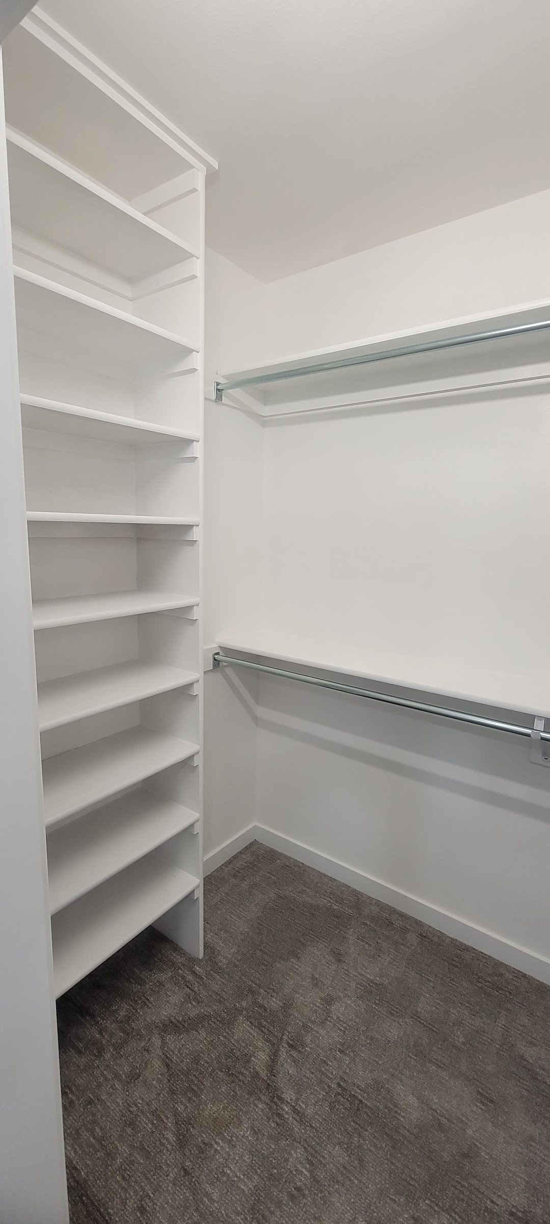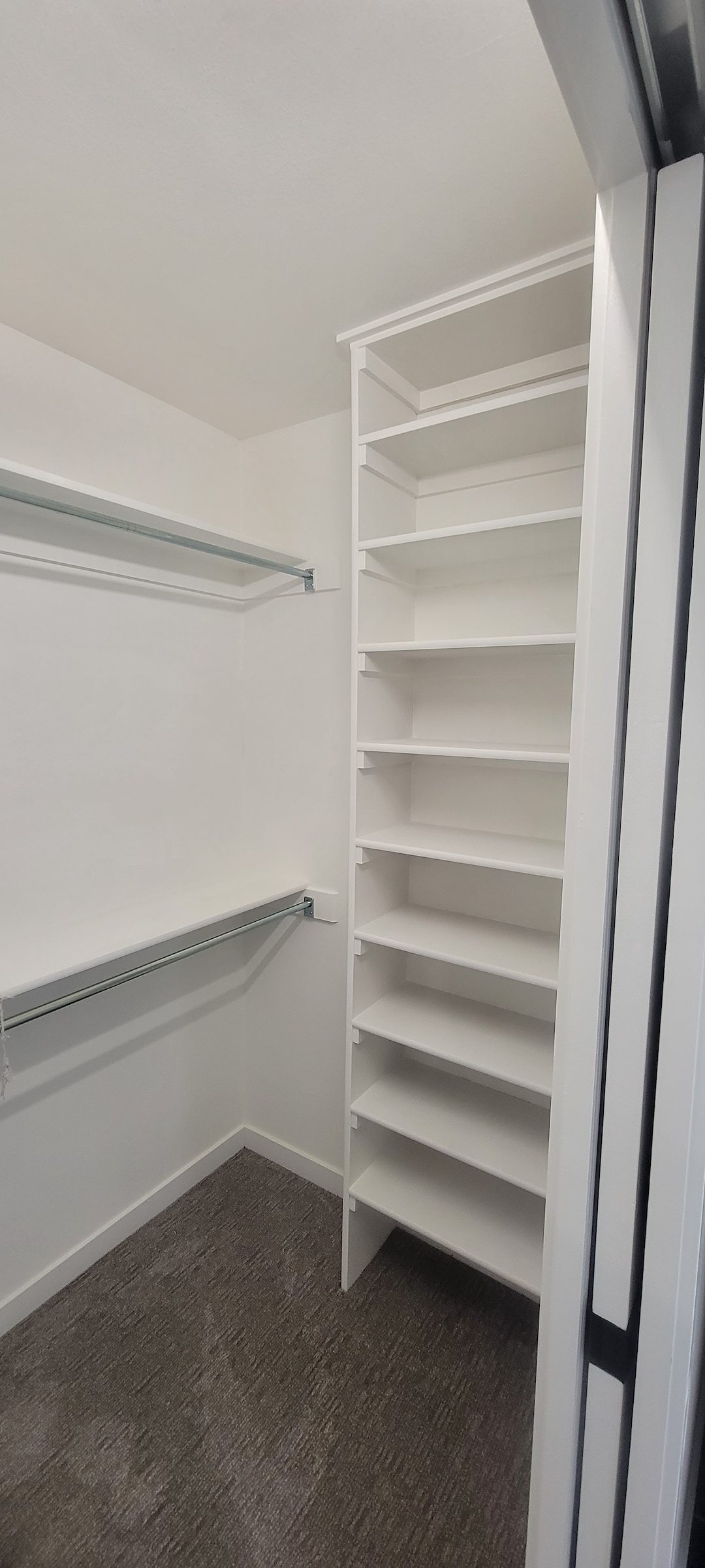Adjacent to the bathroom, we designed and installed a custom closet to replace the previous, cluttered storage. The new closet was planned to fit the space precisely, providing tailored storage that makes dressing and daily routines simpler and faster. The result is an organized, sophisticated dressing area that complements the refreshed bathroom.